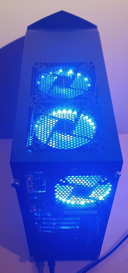 La découpe latérale "X" de XPS permet de voir la carte-mère d'origine avec ses led bleu et vert.