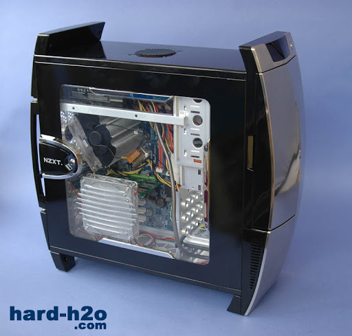 NZXT a de nouveau produit une tour exceptionnelle avec la Lexa S. La série Lexa existait depuis 2005 mais les 1ers modèles étaient peu inspirés, d'une apparence envahissante et lourde. C'est en travaillant sur le panneau avant et les dimensions du PC (d'où le S comme "small") que NZXT aboutit à un vrai style. D'un modèle enflé et empruntant à la nonchalance d'un diplodocus, la Lexa est passé à une sorte de T-Rex, une bête sombre, ramassée, grinçant des dents et prête à ouvrir sa gueule. L'idée originale de la façade a été conservée mais améliorée: le led bleu est ici accompagné de 2 autres en bas de part et d'autre, conférant à la tour un aspect menaçant; la surélévation avant campe mieux l'aspect d'un bouclier et la surélévation arrière a été supprimée. Certes, la console de suivi des températures a disparu mais cette console passive a été remplacée par des boutons de gestion active des ventilateurs, permettant ainsi de choisir la bonne atmosphère du moment, en augmentant le silence de la tour ou sa luminosité.
